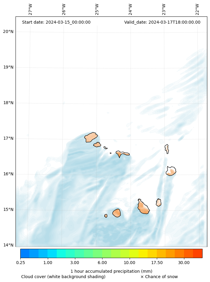 - Snow mixing ratio (g kg¯¹)