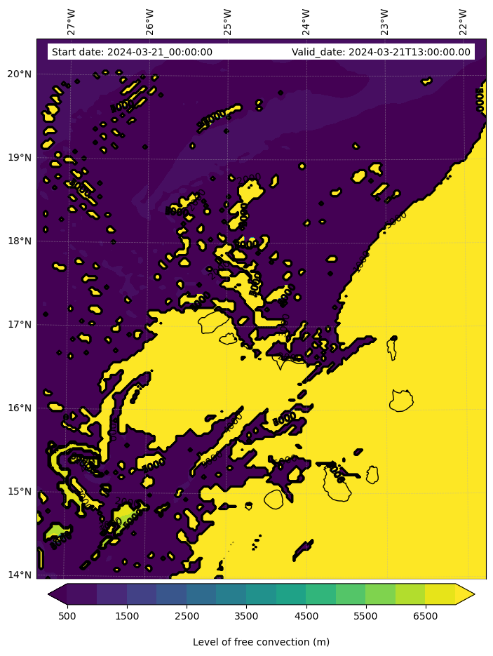 - Level of free convection (m)