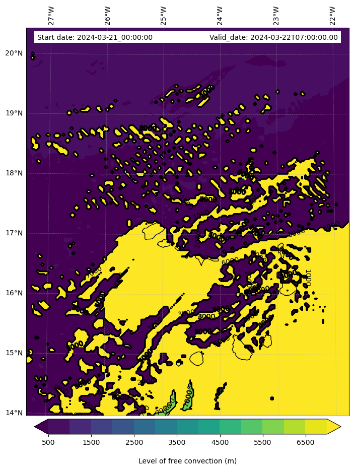 - Level of free convection (m)