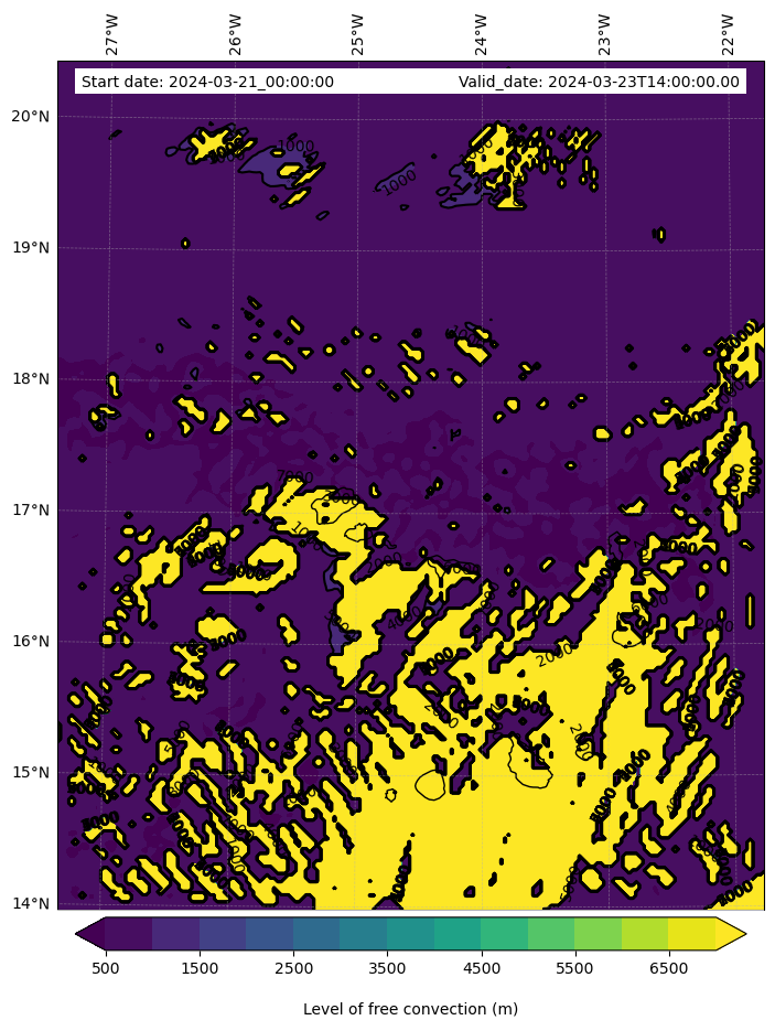 - Level of free convection (m)