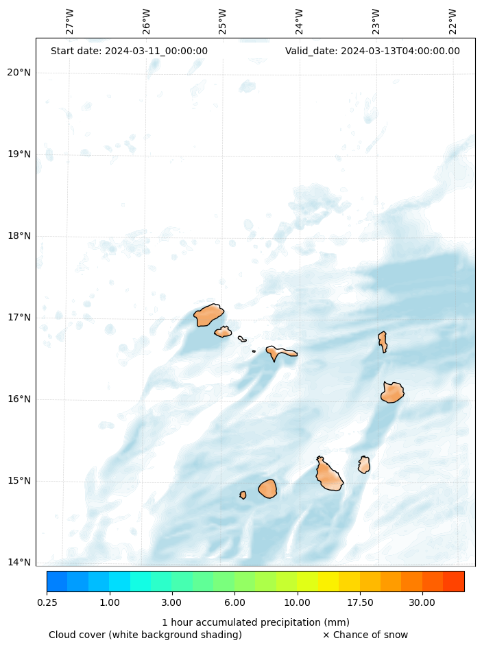 - Snow mixing ratio (g kg¯¹)