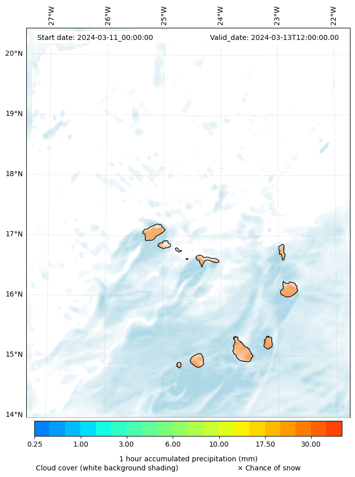 - Snow mixing ratio (g kg¯¹)