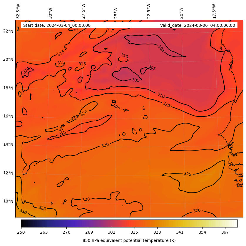 - Equivalent Potential Temperature (K)