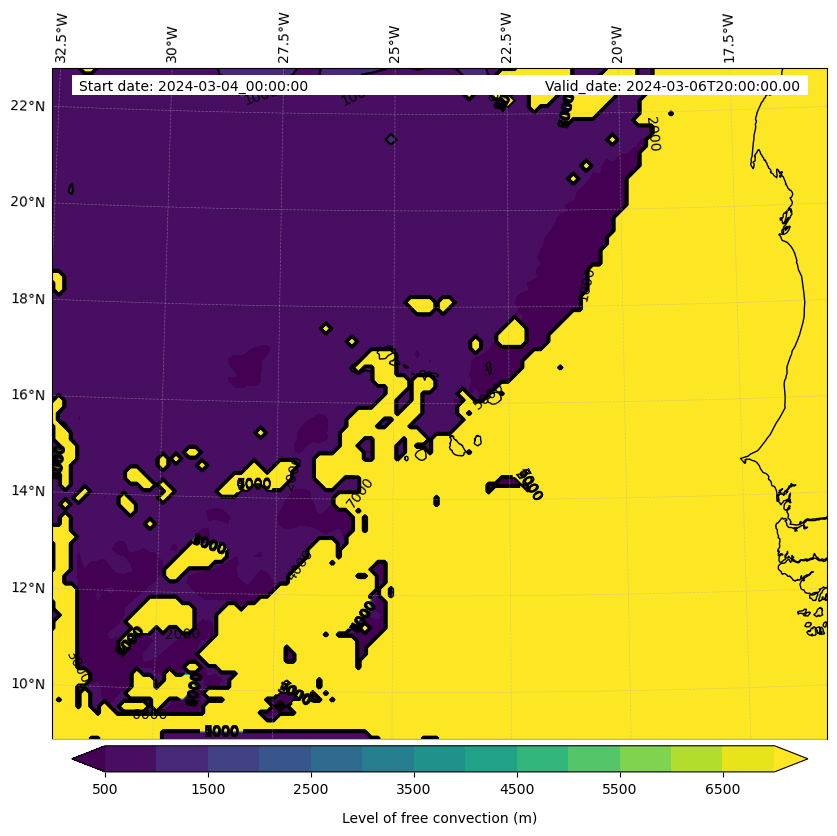 - Level of free convection (m)