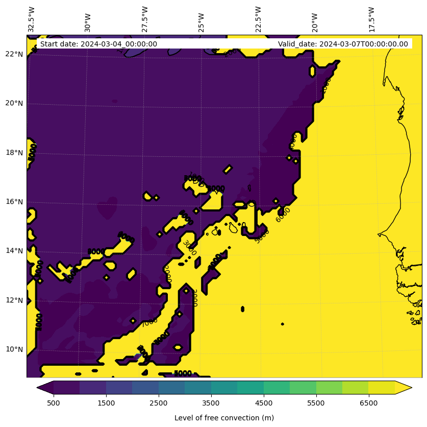 - Level of free convection (m)