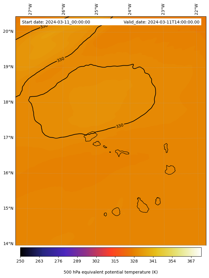 - Equivalent Potential Temperature (K)