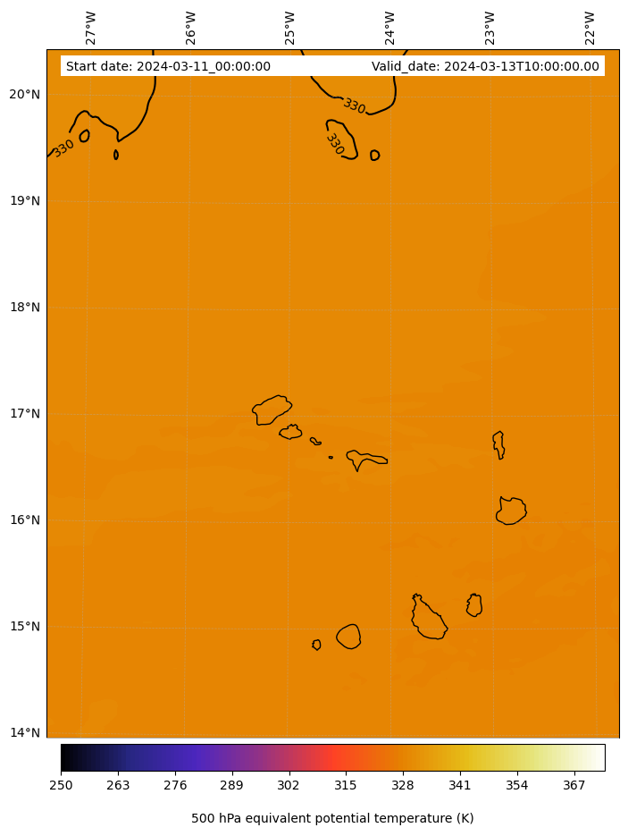 - Equivalent Potential Temperature (K)