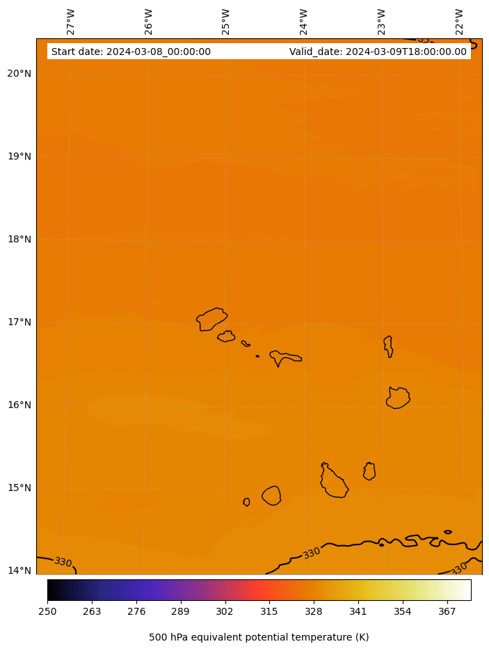 - Equivalent Potential Temperature (K)