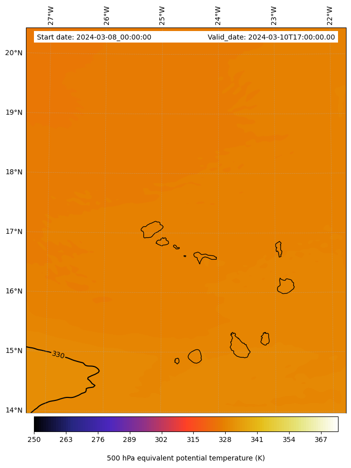 - Equivalent Potential Temperature (K)