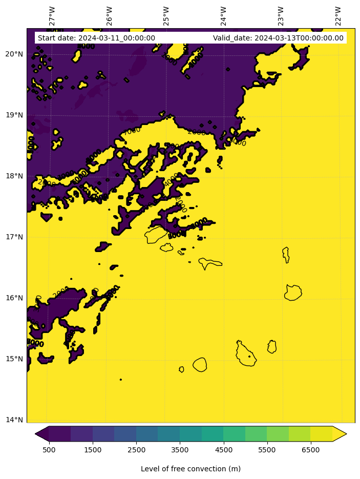 - Level of free convection (m)