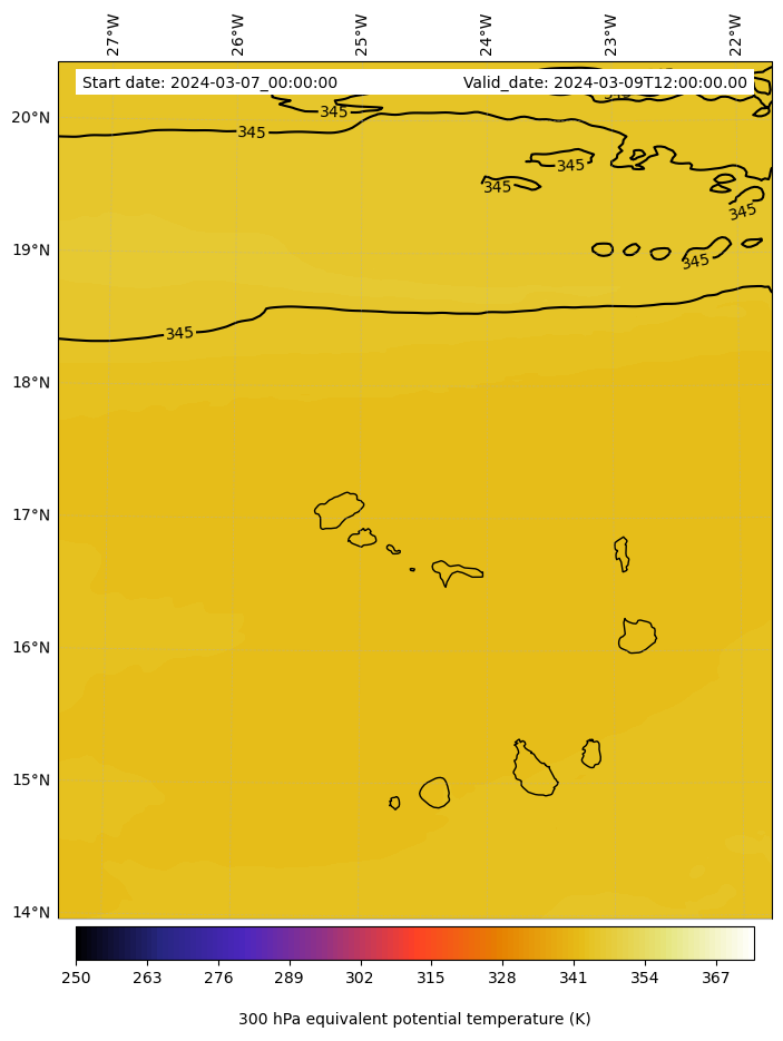- Equivalent Potential Temperature (K)
