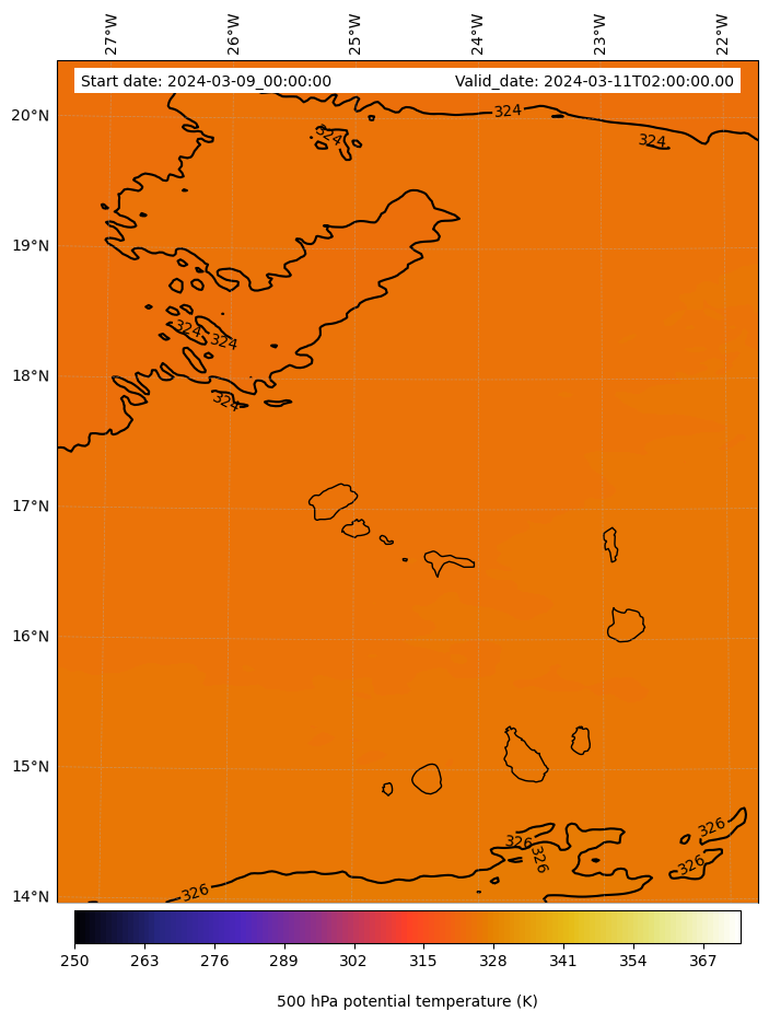- Equivalent Potential Temperature (K)