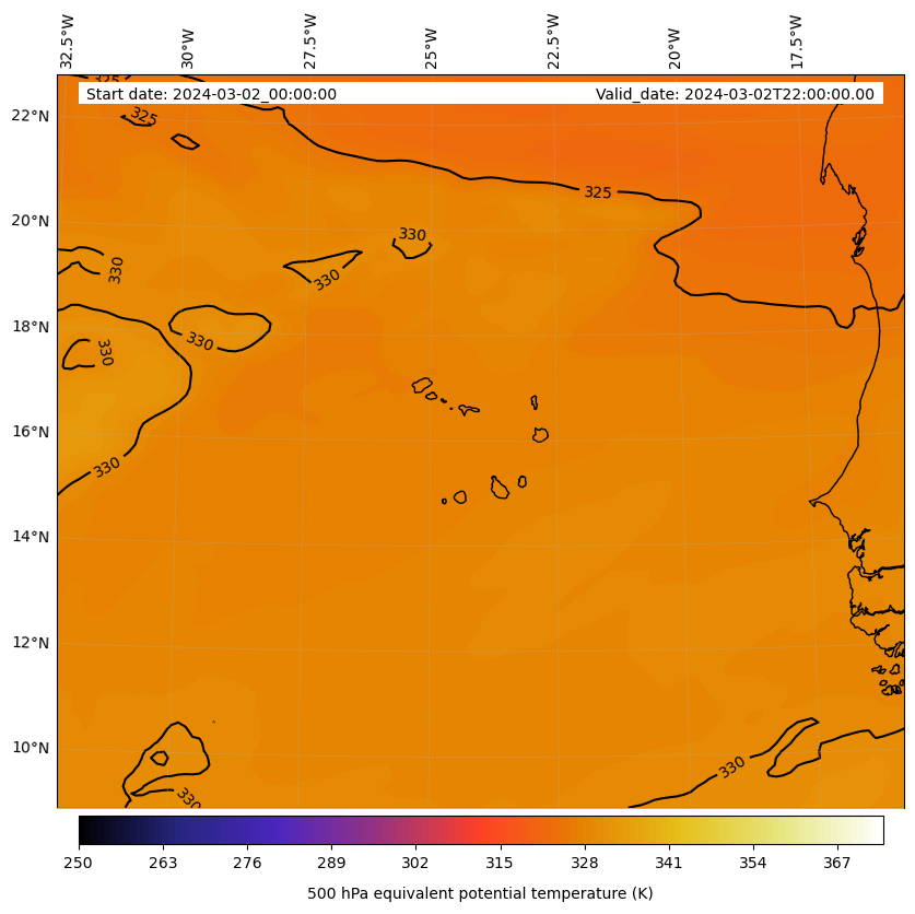 - Equivalent Potential Temperature (K)