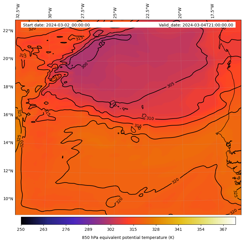 - Equivalent Potential Temperature (K)