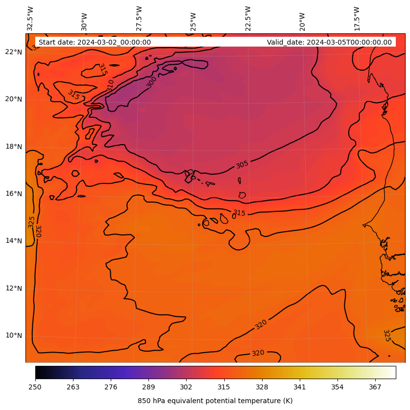 - Equivalent Potential Temperature (K)