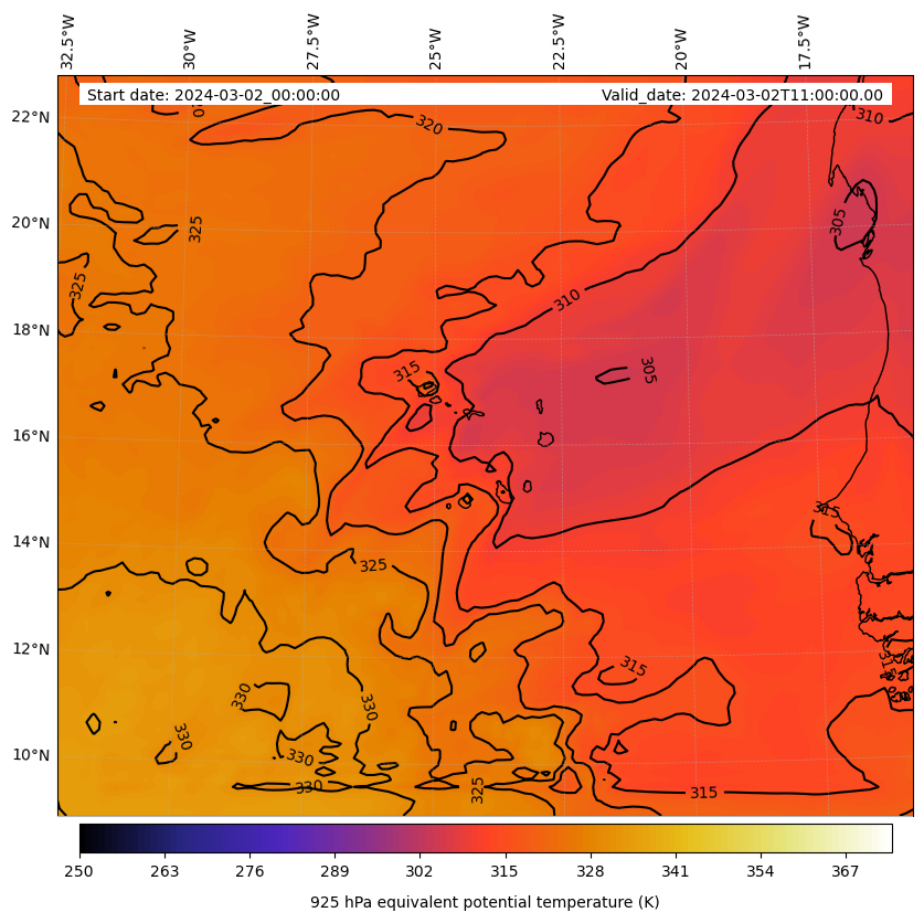 - Equivalent Potential Temperature (K)