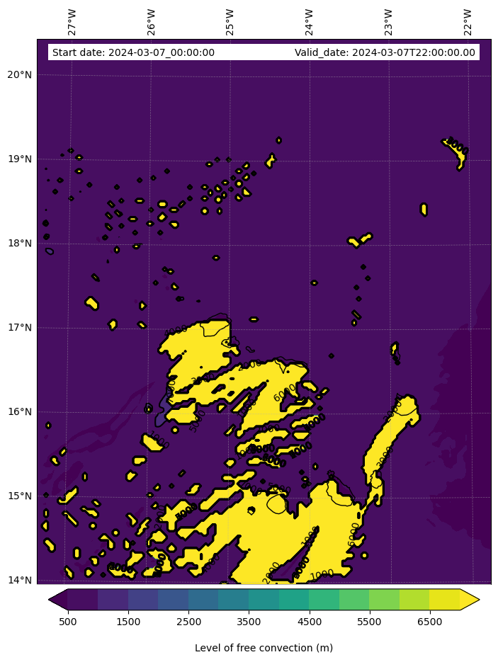 - Level of free convection (m)