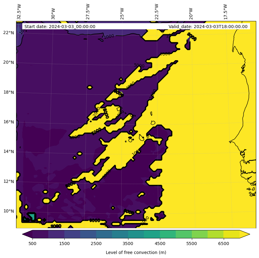 - Level of free convection (m)
