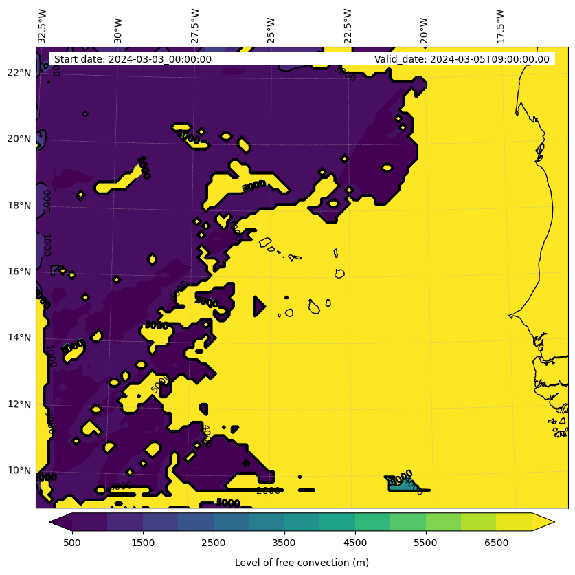 - Level of free convection (m)