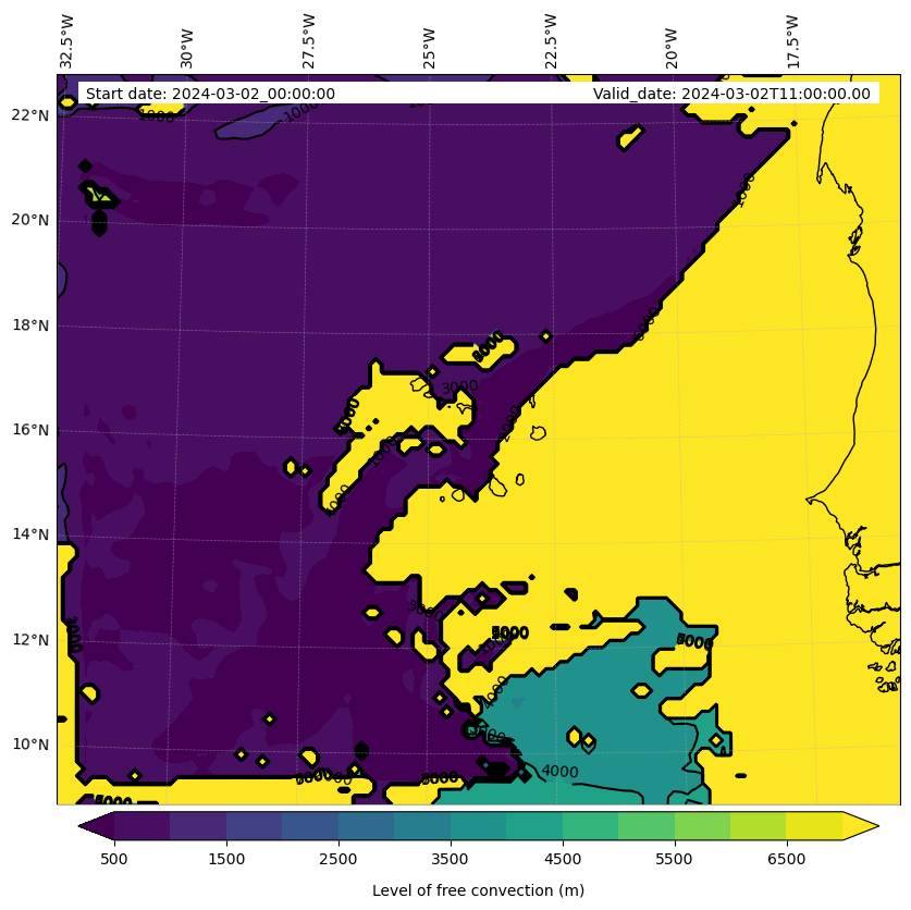 - Level of free convection (m)