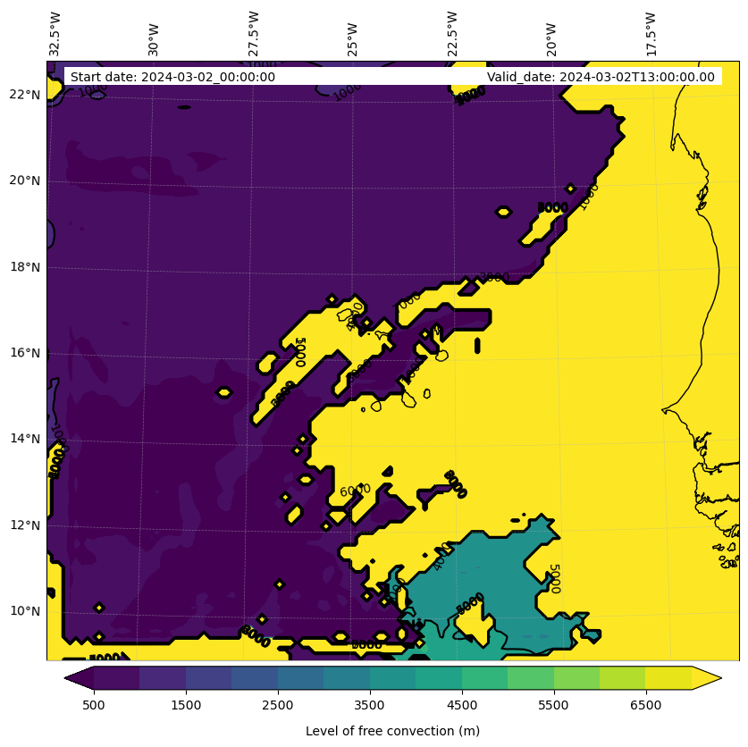 - Level of free convection (m)
