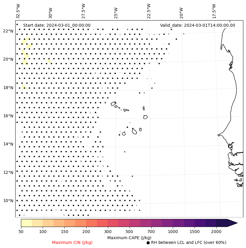 • Maximum CAPE (J/Kg)