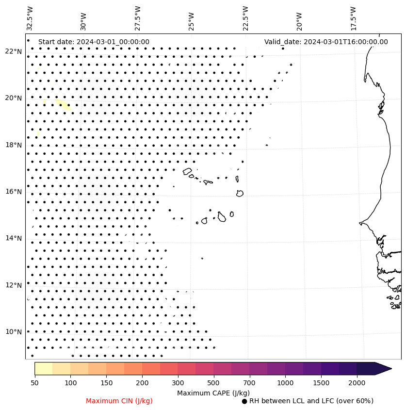 • Maximum CAPE (J/Kg)