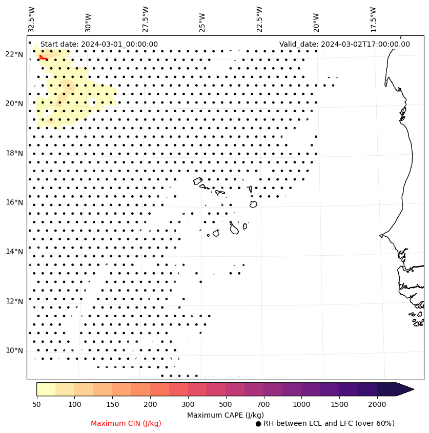 • Maximum CAPE (J/Kg)