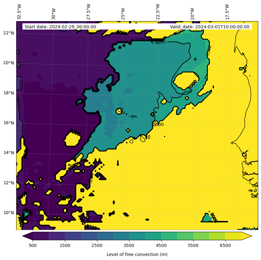 - Level of free convection (m)