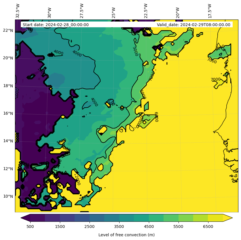 - Level of free convection (m)
