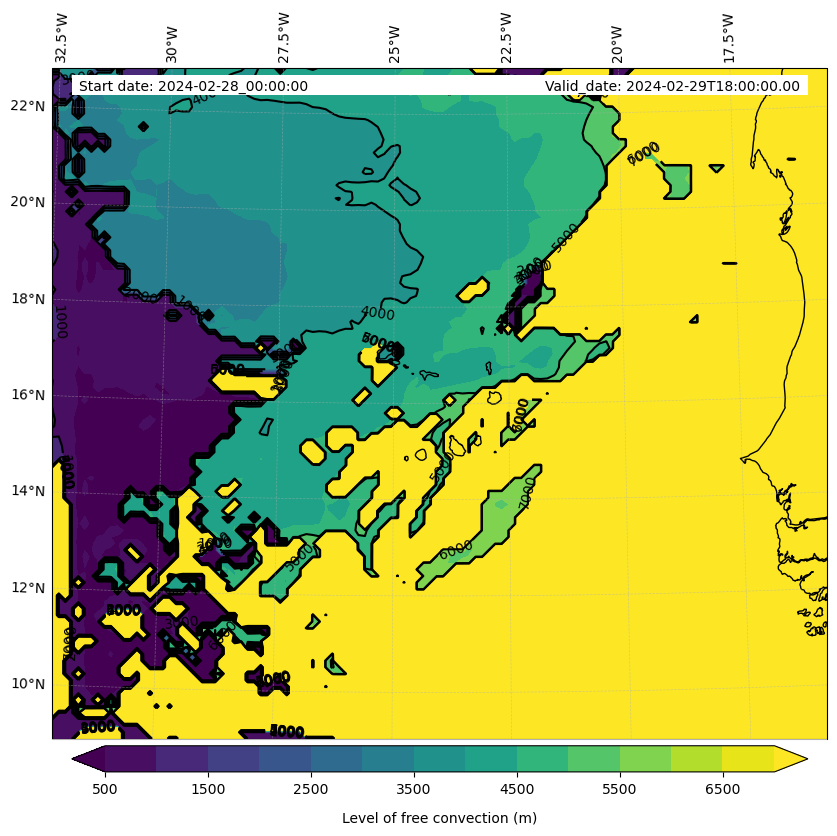 - Level of free convection (m)