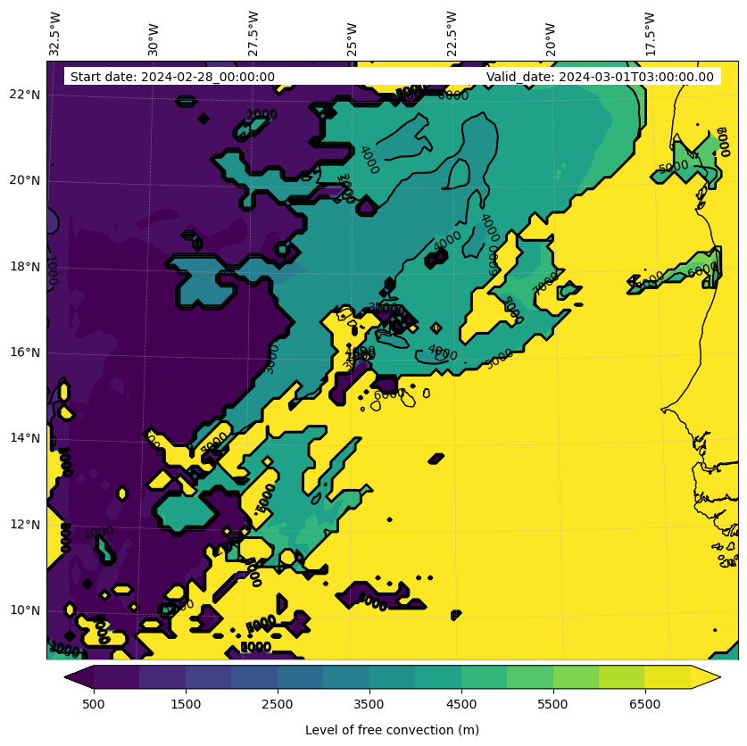 - Level of free convection (m)