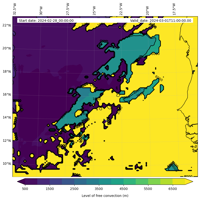 - Level of free convection (m)
