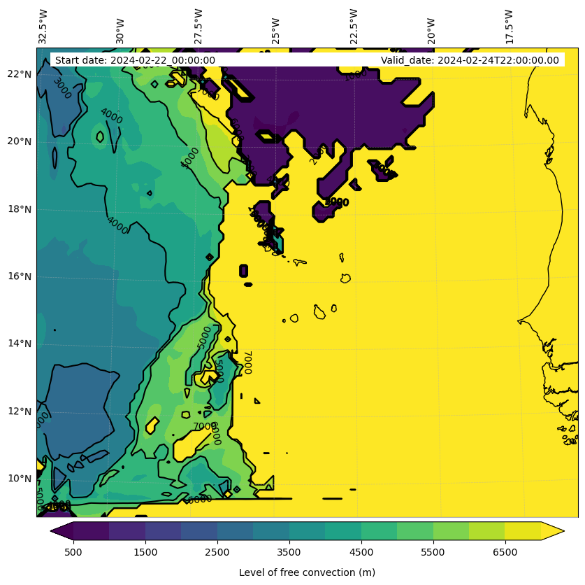 - Level of free convection (m)