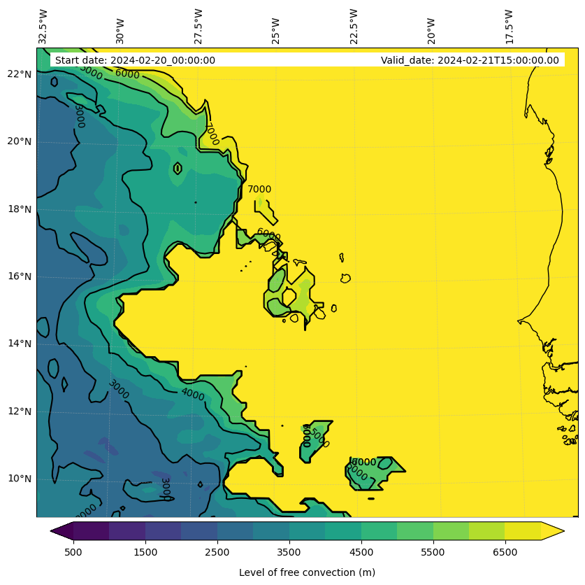 - Level of free convection (m)