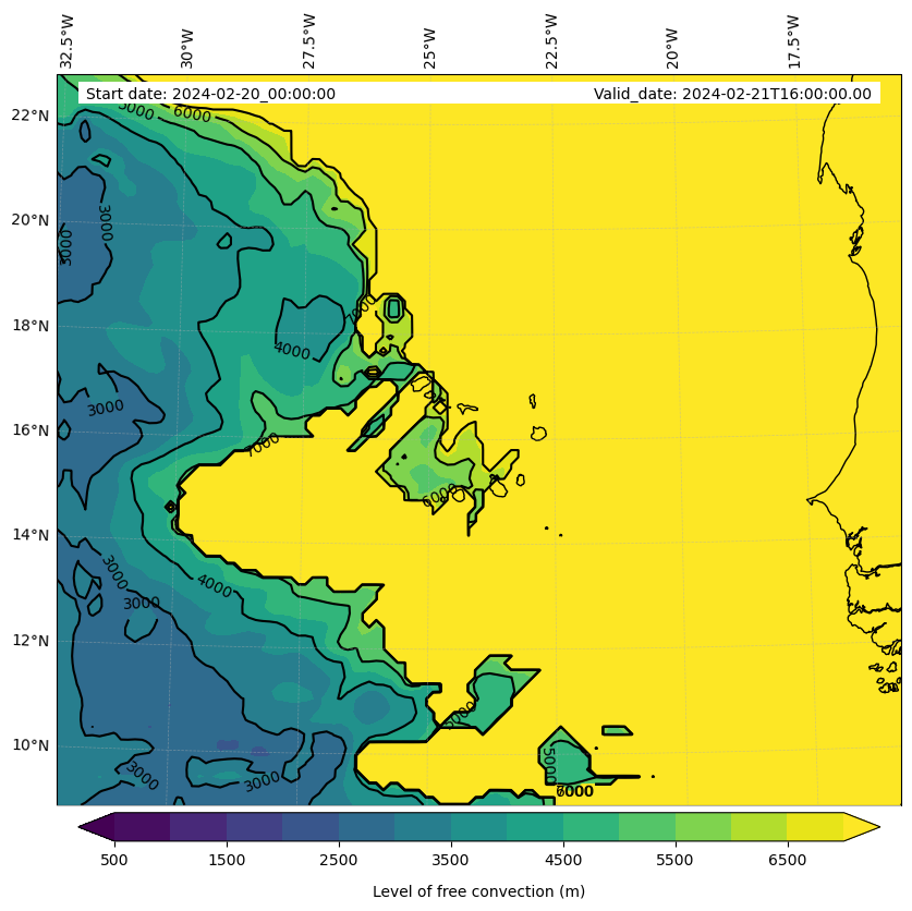 - Level of free convection (m)