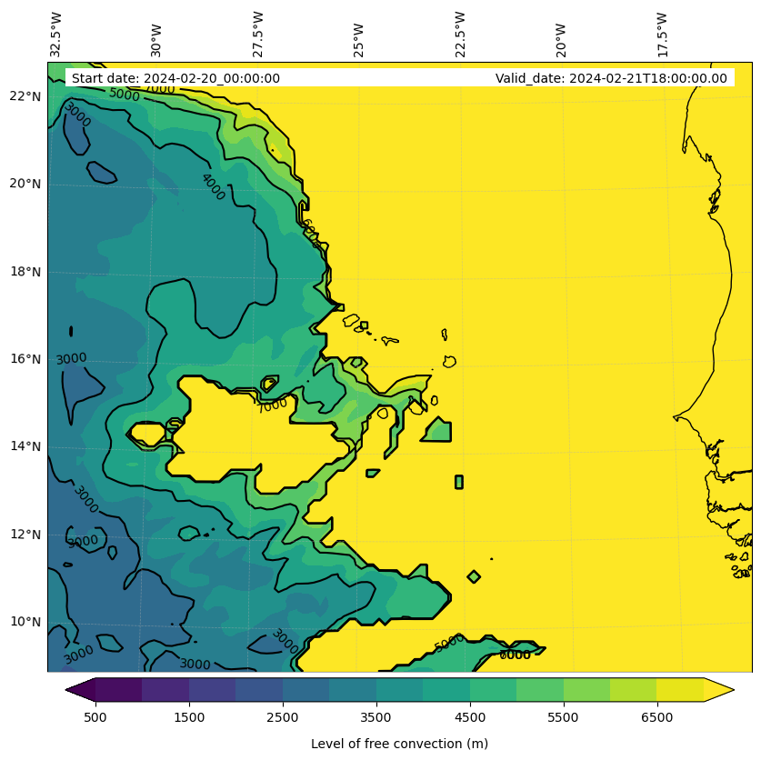 - Level of free convection (m)