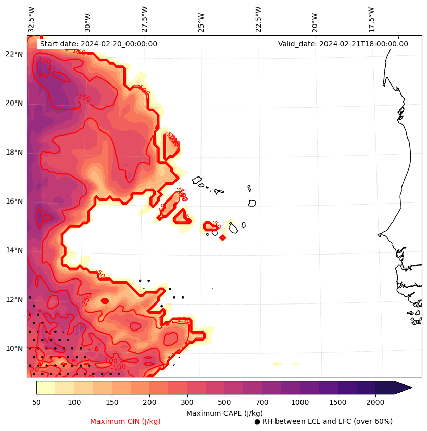 - Maximum CAPE (J/Kg)