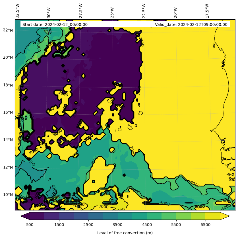 - Level of free convection (m)
