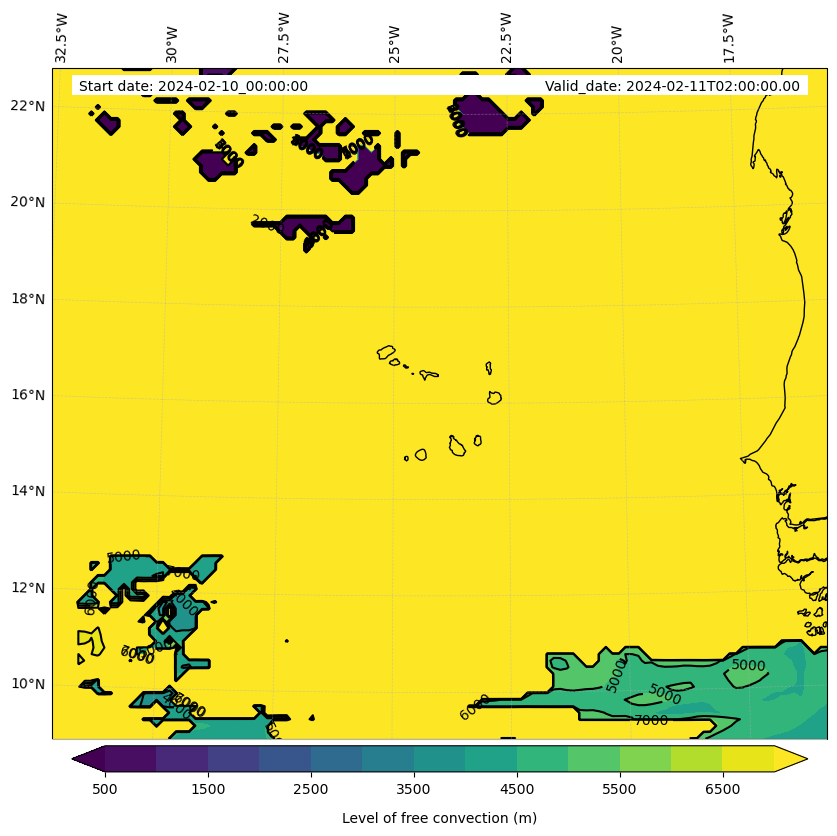 - Level of free convection (m)