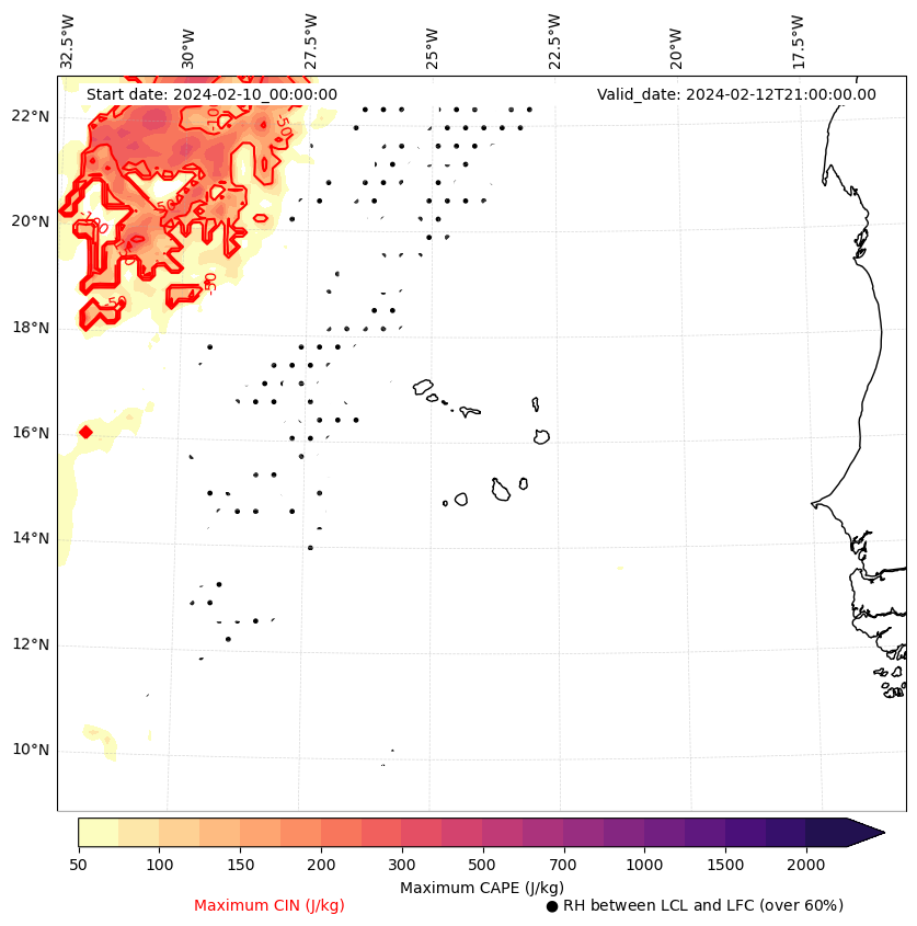 • Maximum CAPE (J/Kg)