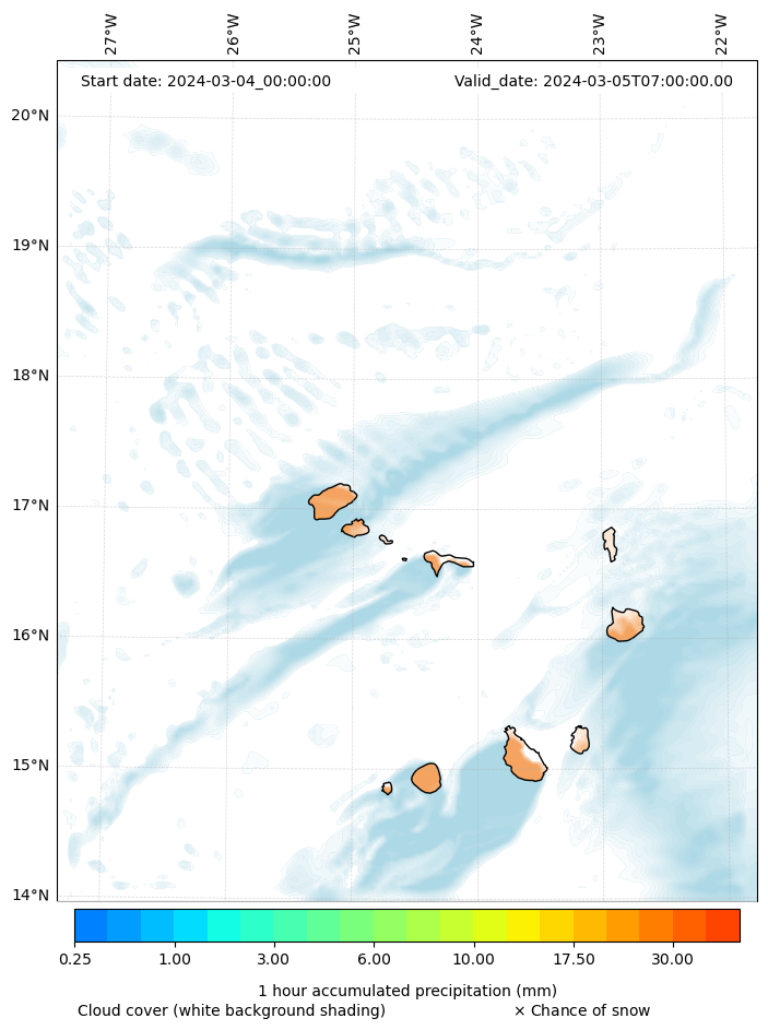 - Snow mixing ratio (g kg¯¹)