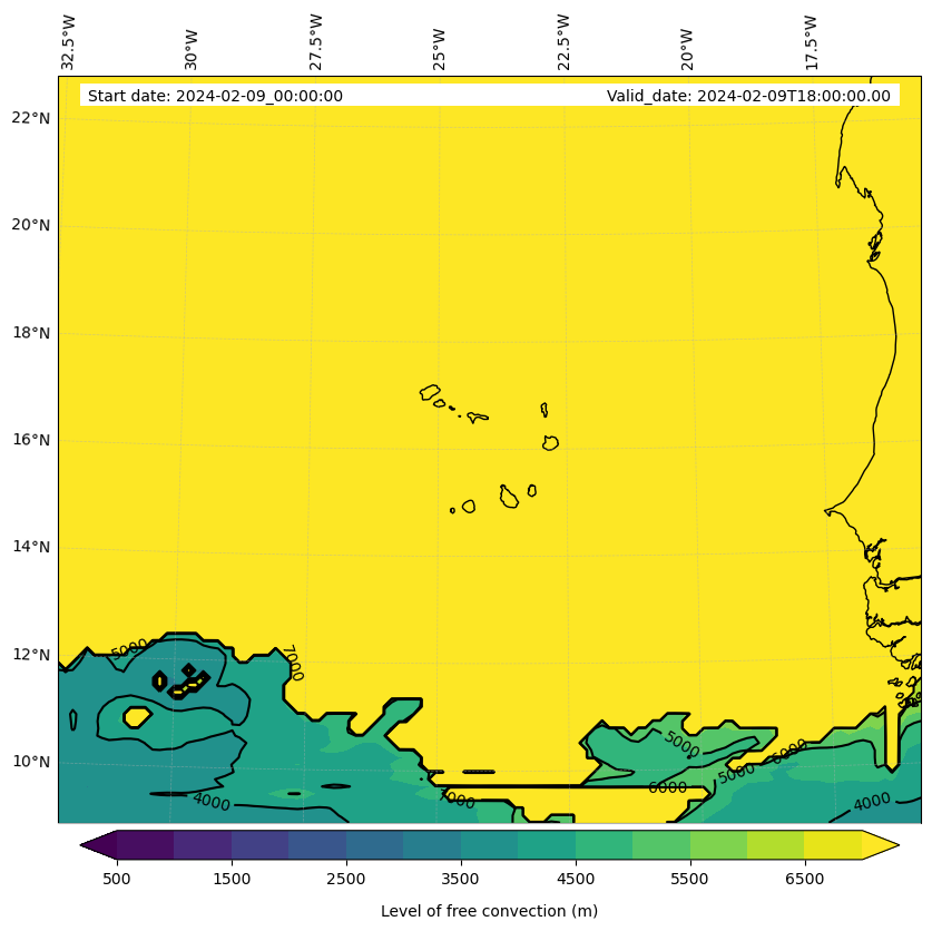 • Level of free convection (m)