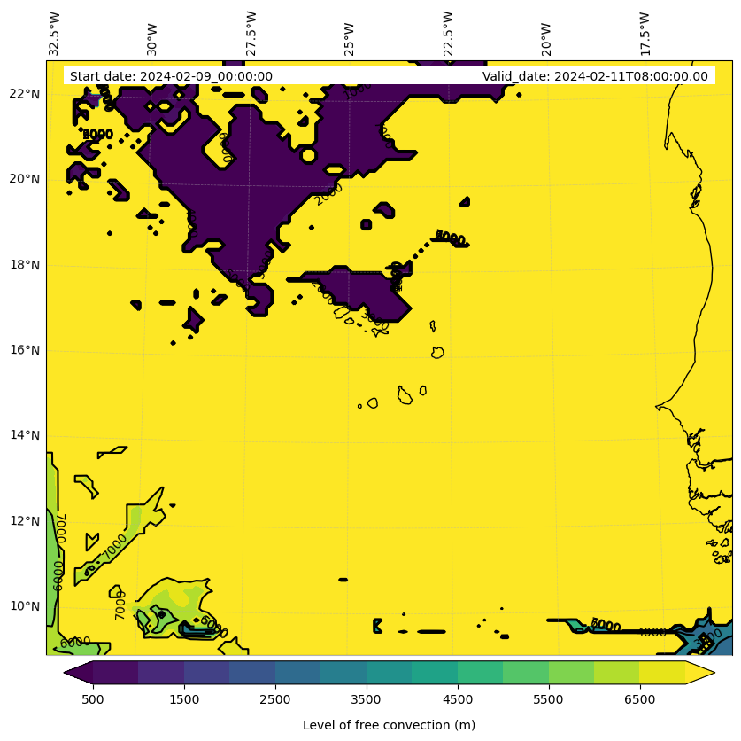 • Level of free convection (m)