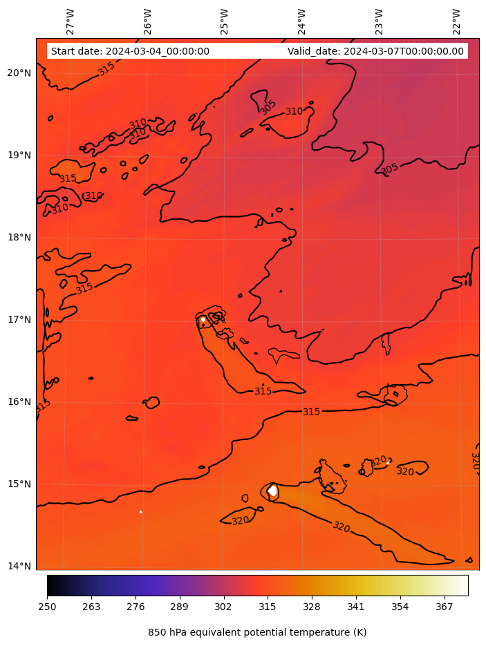 - Equivalent Potential Temperature (K)