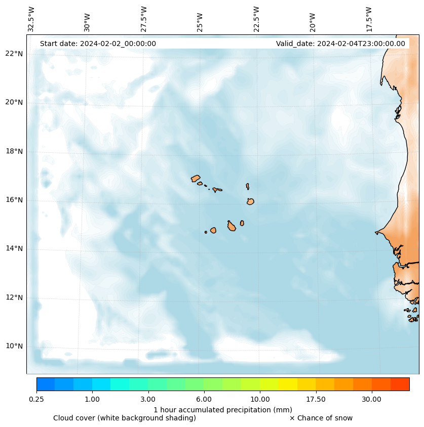 - Snow mixing ratio (g kg¯¹)