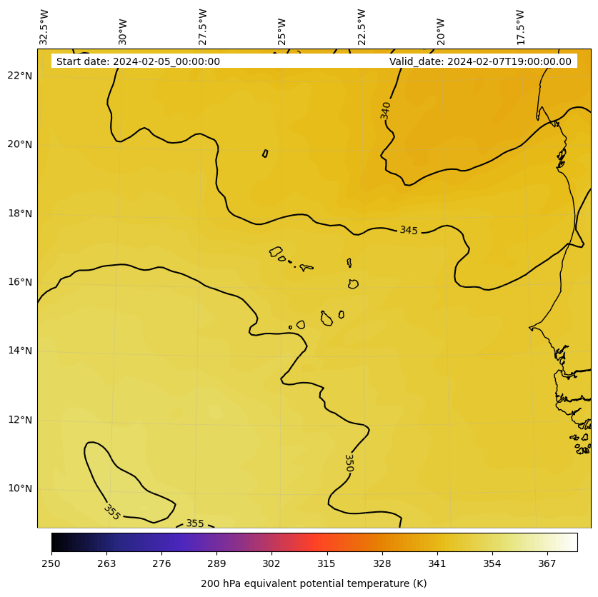 - Equivalent Potential Temperature (K)- 300 hPa