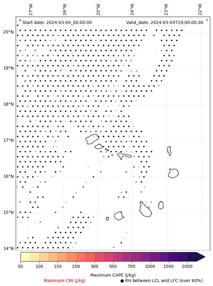 • Maximum CAPE (J/Kg)