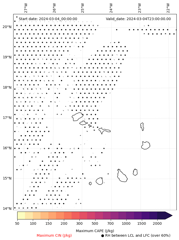 • Maximum CAPE (J/Kg)
