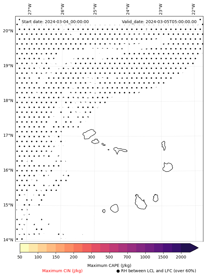 • Maximum CAPE (J/Kg)